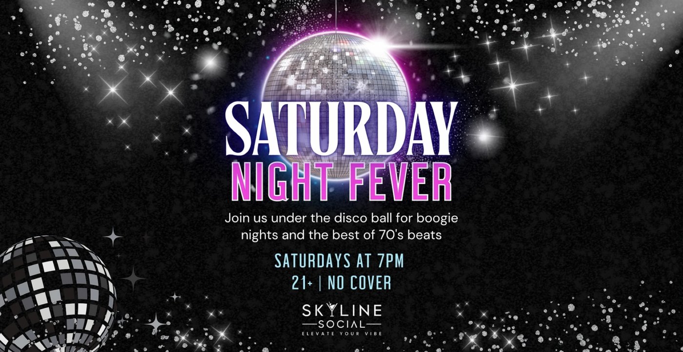 Every Saturday night, Skyline Social transforms into a disco party! Starting at 7PM, step into the groove and get ready to dance under the dazzling disco ball to the best 70s beats and feel-good throwbacks.