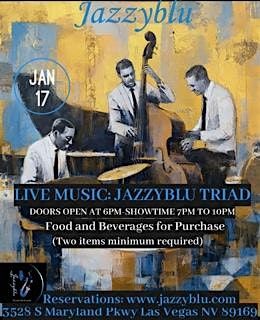 Get ready for an unforgettable night with Jazzyblu Triad bringing their smooth vibes and killer grooves live and in person! Whether you're a jazz enthusiast or just looking for some cool tunes and good vibes, this event is your perfect plan. Come hang out, enjoy the music, and soak up an amazing atmosphere. Don’t miss out on some serious entertainment – it's all happening face-to-face! Jazzyblu is a New Seafood and Jazzy, Soul,and rhythmic & Blues and Soul music four night a week (Thursday-Sunday) with a $20 food and beverage minimum per person and no cover charge. It features Cajun Cuisine intimate, upscale supper club designed to feel both luxurious ans welcoming with seating for approximately 55 guests. Jazzyblu isnt just a place to eat it *s a curated experience where great food, smooth vibed, stepping culture, and community come together under one roof.