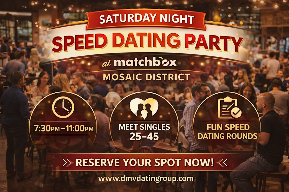 Join us at Matchbox in Mosaic District for our high-energy Saturday Night Speed Dating Mixer — the ultimate weekend event for singles ready to meet face-to-face in a fun, vibrant atmosphere.
