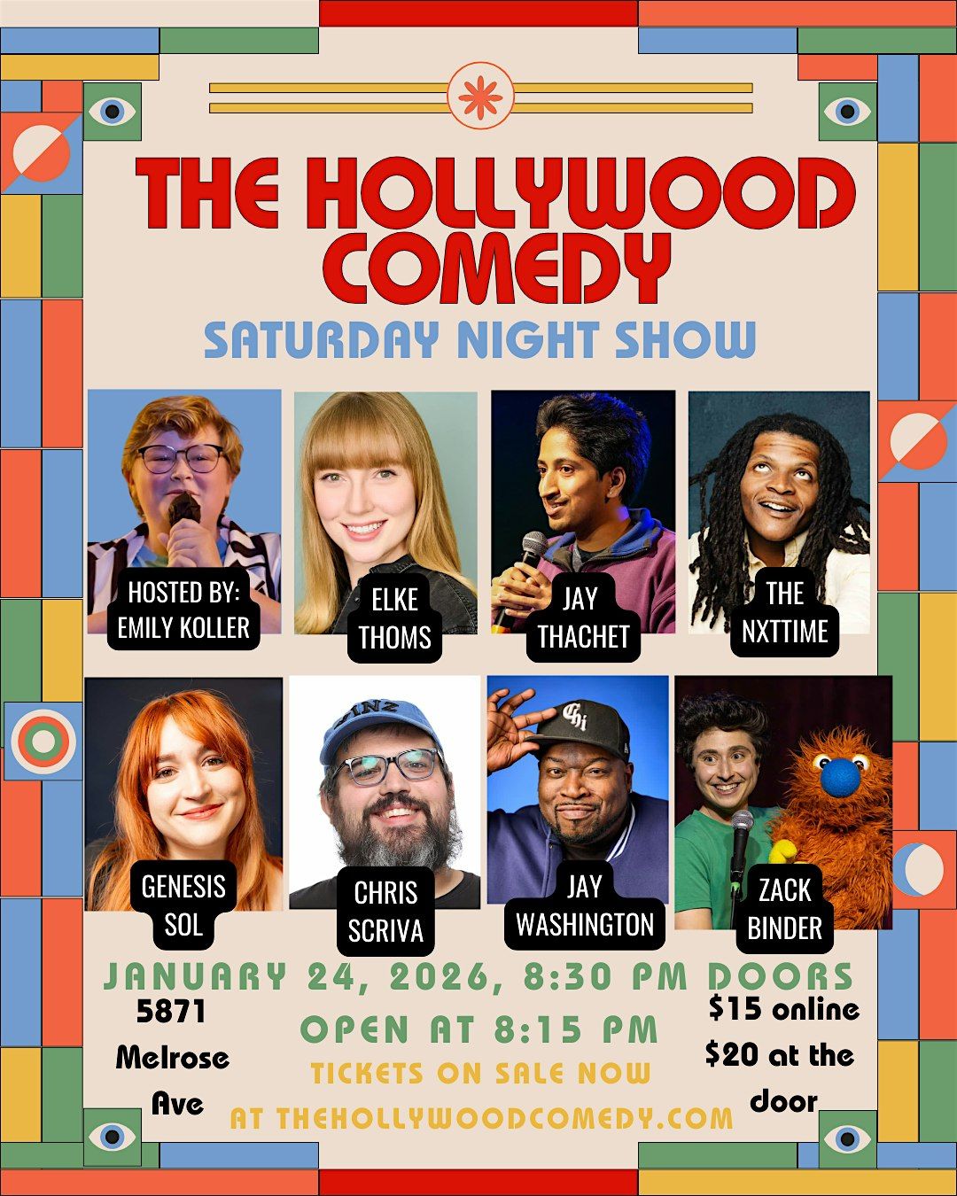 Welcome to **SATURDAY NIGHT COMEDY AT THE HOLLYWOOD COMEDY **! Get ready to laugh at this hilarious event happening at The Hollywood Comedy. Join us on **Saturday, January 24th, 2026** at **8:30** for a night full of incredible comedy performances by talented stand-up comedians. Don't miss out on the chance to unwind and have a great time with friends or family. Ages 18+ admitted. Get ready for a night of unbeatable entertainment at The Hollywood Comedy! See you there!
