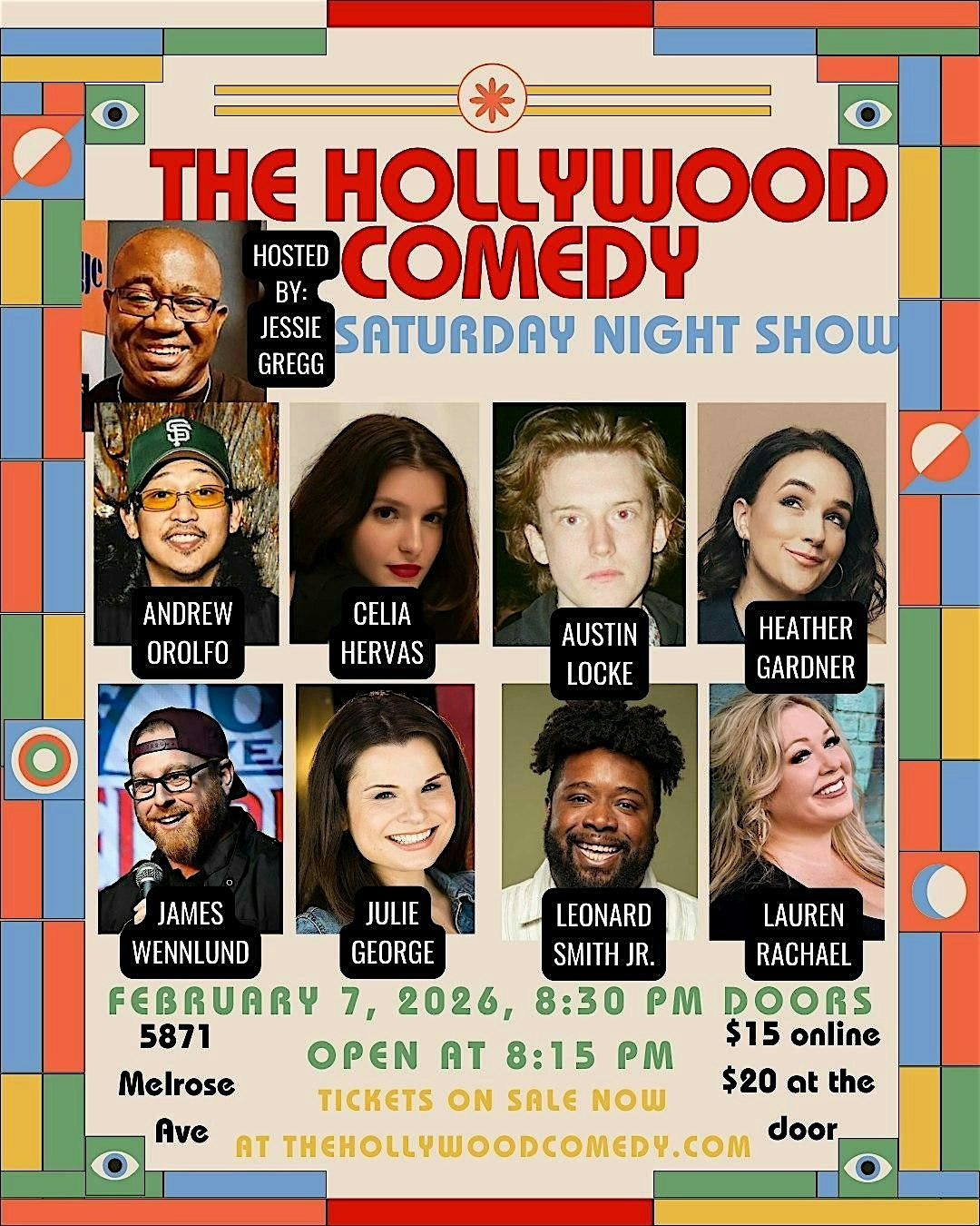 Welcome to **SATURDAY NIGHT COMEDY AT THE HOLLYWOOD COMEDY **! Get ready to laugh at this hilarious event happening at The Hollywood Comedy. Join us on **Saturday, February 7th, 2026** at **8:30** for a night full of incredible comedy performances by talented stand-up comedians. Don't miss out on the chance to unwind and have a great time with friends or family. Ages 18+ admitted. Get ready for a night of unbeatable entertainment at The Hollywood Comedy! See you there!