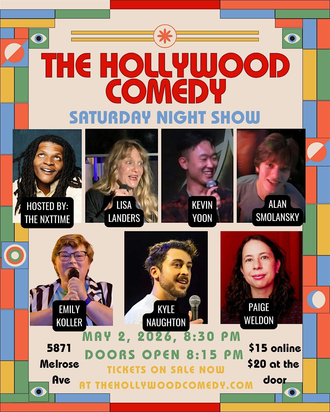 Welcome to **SATURDAY NIGHT COMEDY AT THE HOLLYWOOD COMEDY **! Get ready to laugh at this hilarious event happening at The Hollywood Comedy. Join us on **Saturday, May 2nd, 2026** at **8:30** for a night full of incredible comedy performances by talented stand-up comedians. Don't miss out on the chance to unwind and have a great time with friends or family. Ages 18+ admitted. Get ready for a night of unbeatable entertainment at The Hollywood Comedy! See you there!