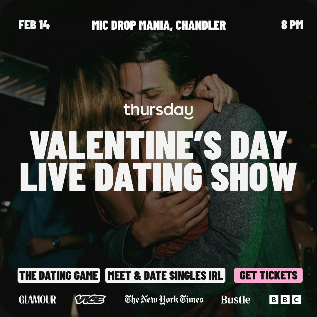🍹 7:00PM – Arrive early for some pre-show mingling and drinks on the patio.🚪 7:30PM – Doors open!🎤 8PM – The show kicks off as 4 beautiful bachelors and bachelorettes will be dating three lucky participants each -- all chosen on the day of the show. 🍻 9PM – Post-show mingle on the patio for all Thursday attendees.