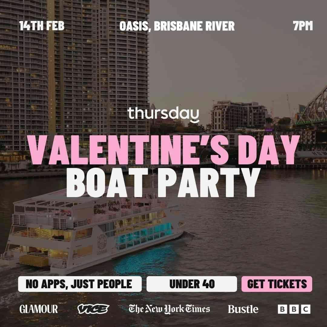 We’re back with one of our favourite events - setting sail aboard Oasis for a flirty Valentine’s night cruising the Brisbane River under the city lights. Expect music, cocktails, chemistry and unapologetically single energy.