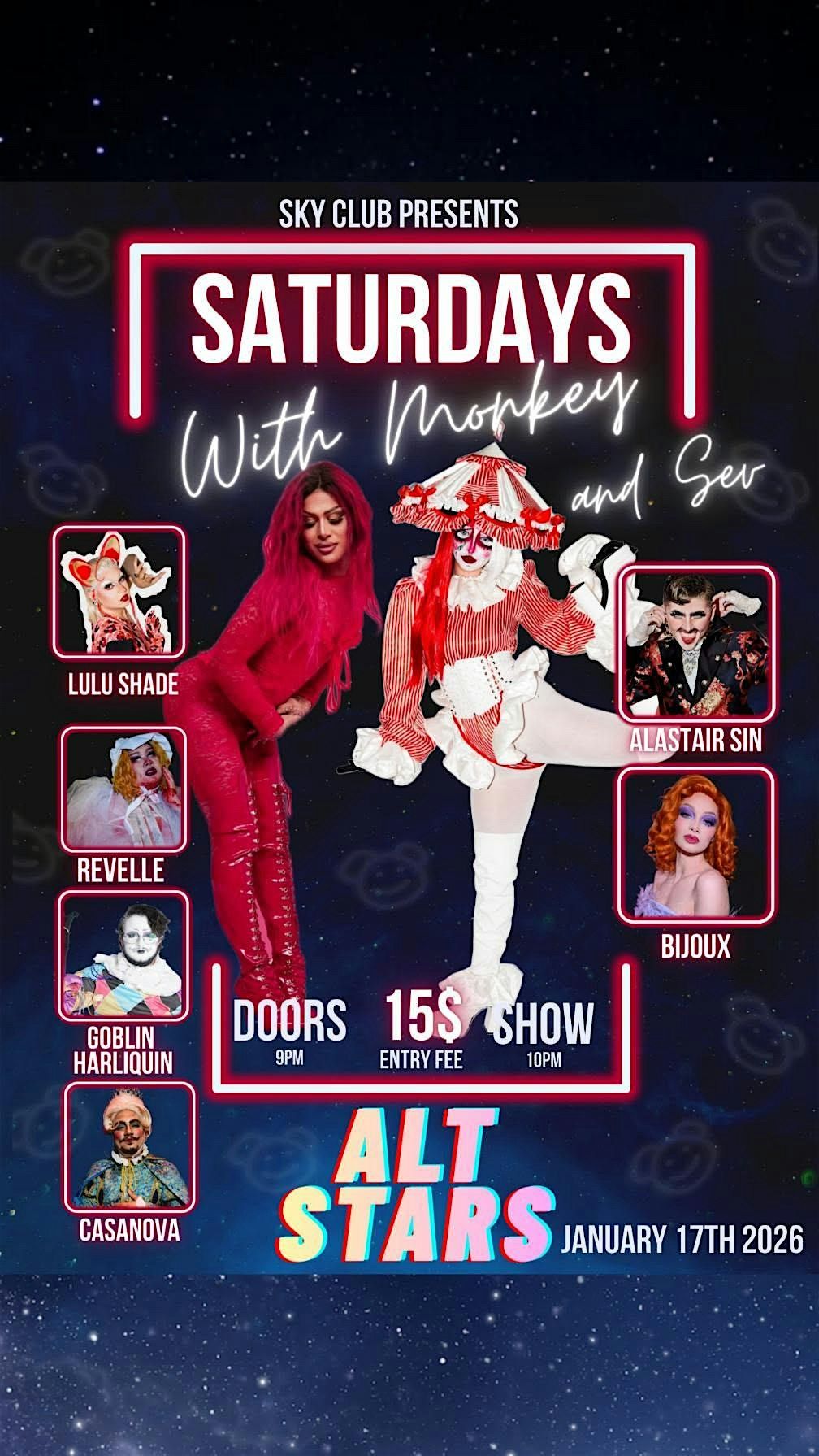 “Monkey swings into Saturday night, taking over the residency for one wild drag show—fierce looks, chaos, and nonstop energy. One night only