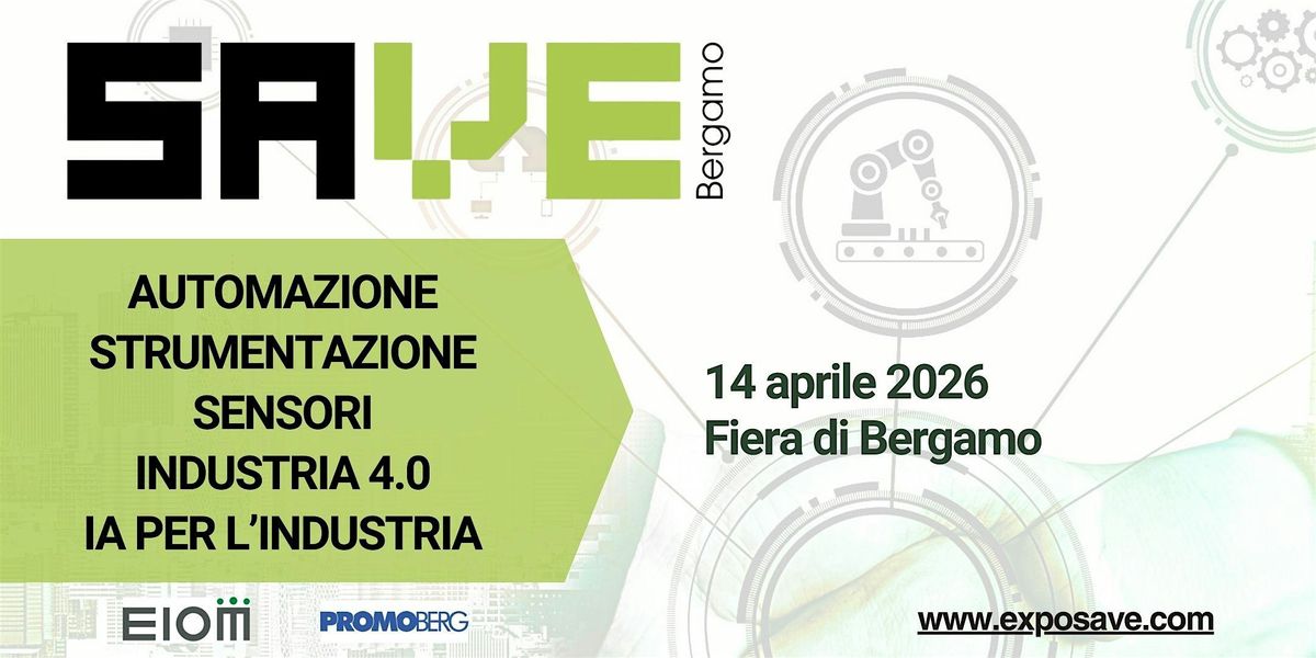 SAVE Mostra Convegno Verticale dedicata all’automazione industriale e di processo, alla strumentazione e sensoristica, all’Intelligenza Artificiale e alle Tecnologie 4.0 e 5.0 vi aspetta alla Fiera di Bergamo il 14 aprile 2026. La giornata anticipa l’appuntamento autunnale al PAD 4 in Fiera di Verona il 7 e 8 ottobre.