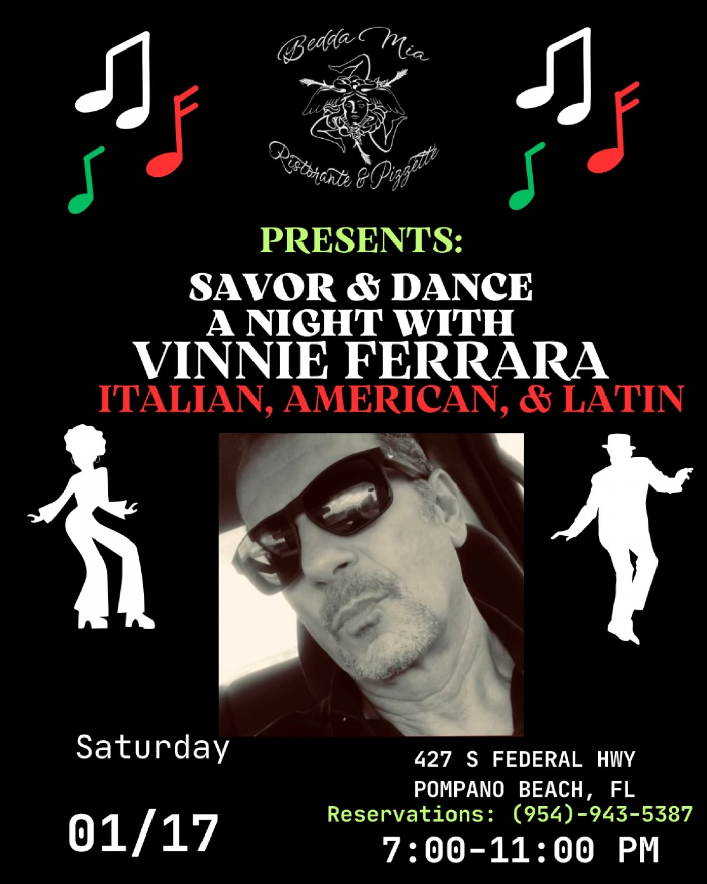 🎶 Savor & Dance: A Night with Vinnie Ferrara 🍝✨ Italian-American flavors, classic tunes, and dance-worthy twirls! 💃🕺 Join us Saturday, Jan 17th | 7–11 PM at Bedda Mia Ristorante & Pizzette for an unforgettable evening of Italian-American music and dancing, paired with delicious cuisine. Reserve your table now: (954) 943-5387