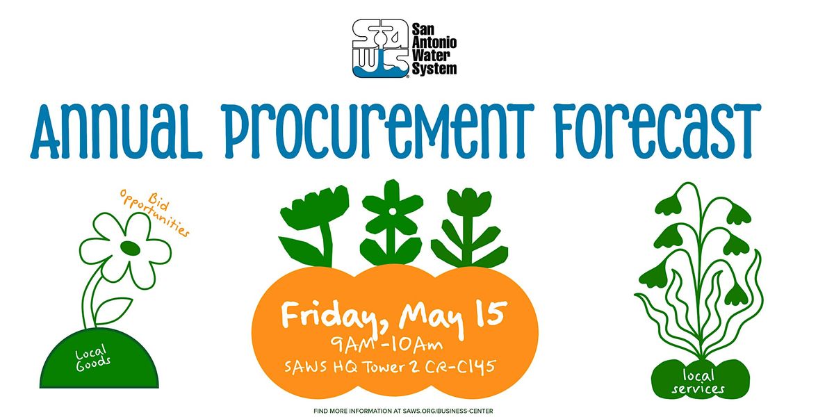 You're invited! Join us in person for the SAWS Annual Procurement Forecast, a fantastic opportunity to connect, learn, and grow. We’ll be sharing key insights into upcoming procurement opportunities, along with special announcements you won’t want to miss.
