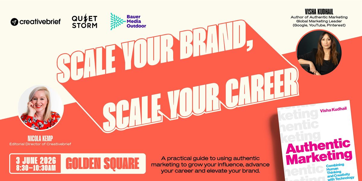 Hosted by Quiet Storm, Creativebrief and Bauer Media Outdoor, this fireside chat between Nicola Kemp, Editorial Director of Creativebrief, and Visha Kudhail, global marketing leader (Formerly Google, YouTube, Pinterest, Square) and author of Authentic Marketing, will explore how marketers can amplify your brand impact, operate at a more strategic level - and gain influence in the boardroom.