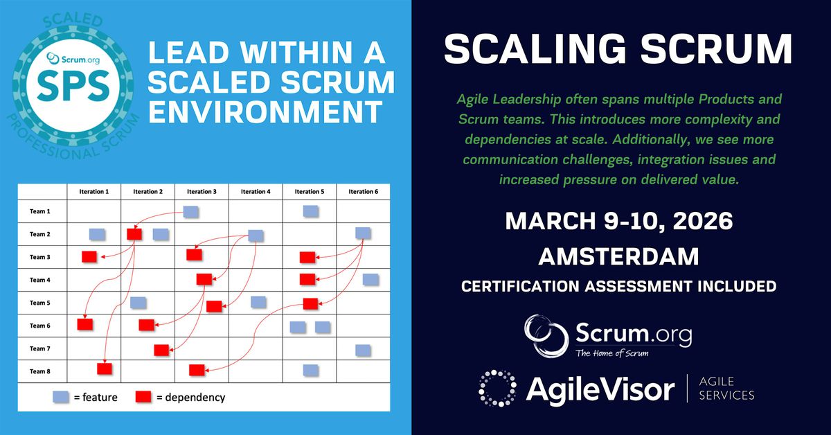 In this 2-day Scaled Professional Scrum (SPS) workshop, students will simulate a large software development project using the Nexus™ framework. The workshop is delivered using an end-to-end case study where students work together to organize and simulate a scaled software development project. Throughout the workshop, students will be introduced to more than 50 practices that can be used to help reduce complexity and dependencies at scale.