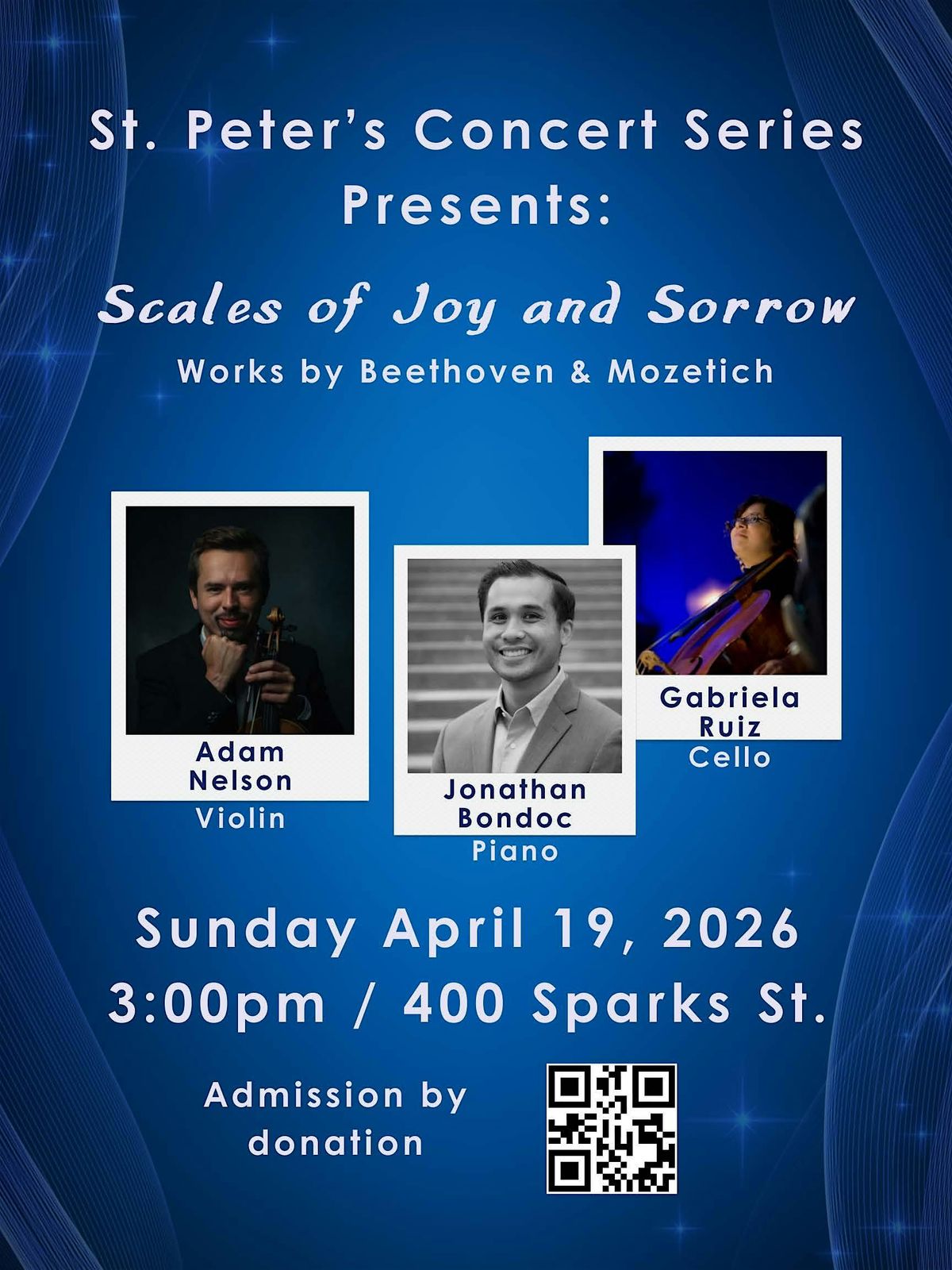Works for Piano Trio featuring Adam Nelson-Violin, Gabreila Ruiz-Cello, Jonathan Bondoc-P