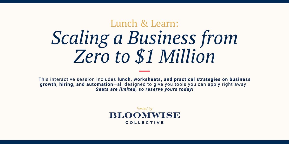 Entrepreneurs Unite β Scaling a Business from Zero to $1M is the first in a series of Lunch & Learn events designed to educate and connect like-minded entrepreneurs who want to build sustainable, scalable businesses. Hosted by Bloomwise Collective, this session walks attendees through the seven stages of the business lifecycle and the starter essentials every entrepreneur needsβfrom legal setup and financial infrastructure to branding, marketing, and operations.