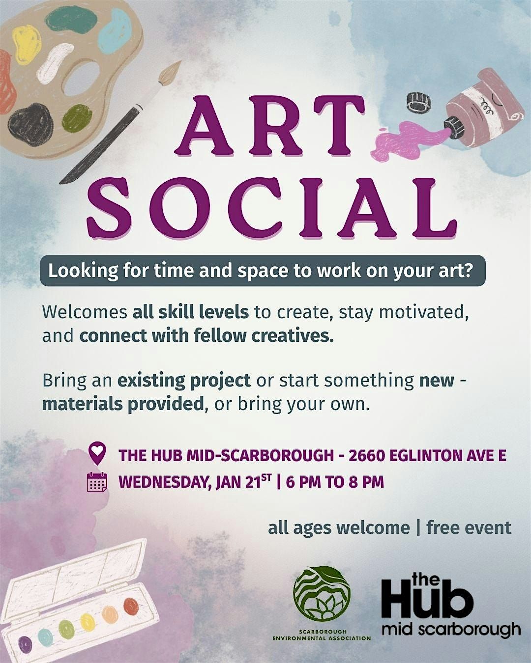 All skill levels are welcome to create, stay motivated, and connect with fellow creatives. Bring a project you’re already working on or start something new. Basic art materials will be provided, or feel free to bring your own supplies.