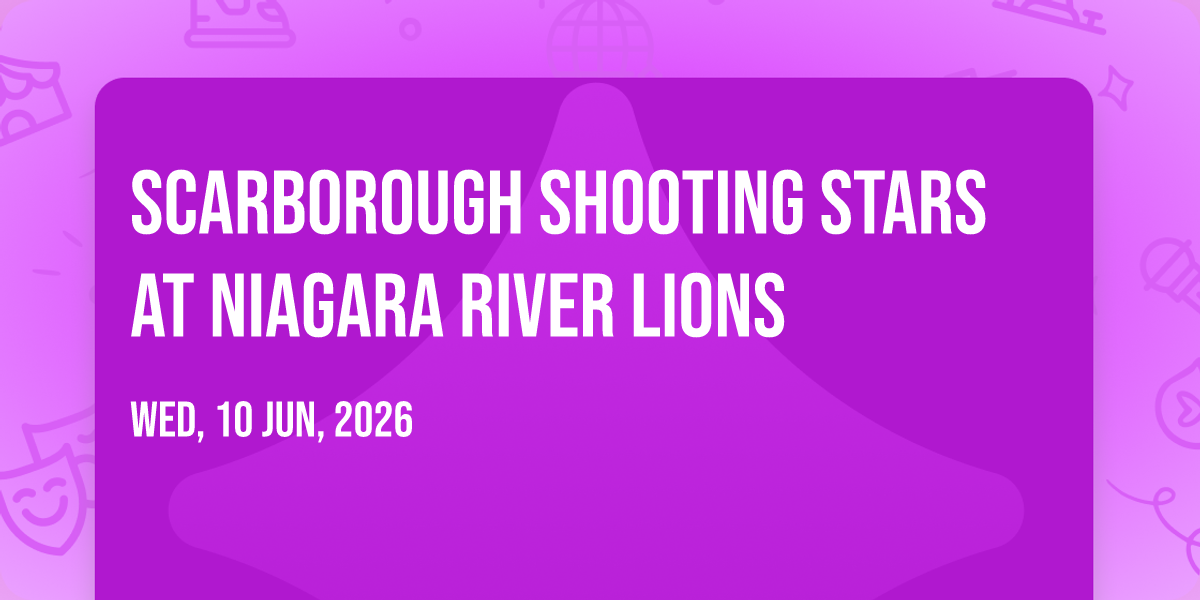 📍 Location: 43.15642, -79.244🎉 Welcome to Scarborough Shooting Stars at Niagara River Lions, where the impossible becomes possible and dreams take flight! 🏛️ Join us at Meridian Centre in the heart of St. Catharines, ON for an event that will redefine your expectations. 📅 On July 10th, 2026 at 11:00 PM, witness the transformation of space and time into something truly magical. ✨ It's a curated experience combining the best of innovation, entertainment, and community spirit, creating moments that will be remembered for years to come. Whether you're a first-time visitor or a seasoned enthusiast, prepare to be amazed. 🎊 Book now to ensure your place in this unforgettable experience!