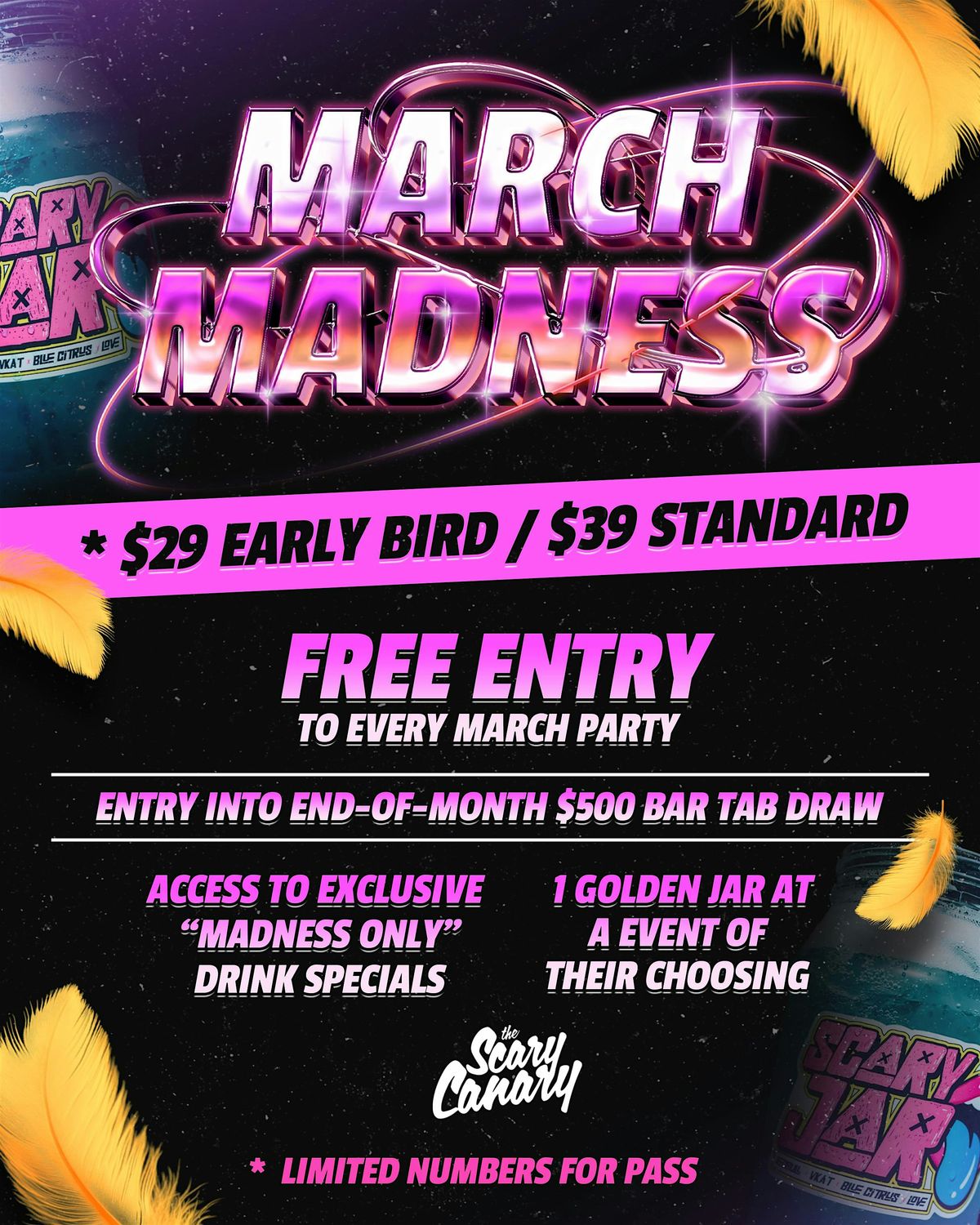 Pass holders also go into the draw to win a $500 bar tab at the end of March, unlock exclusive “Madness Only” drink specials, and receive 1 Golden Jar to use at any March event of your choice.