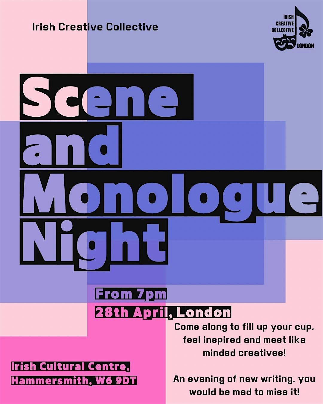 Join the Irish Creative Collective at FREE Scene & Monologue Night where we showcase some of the finest Irish Creatives in London