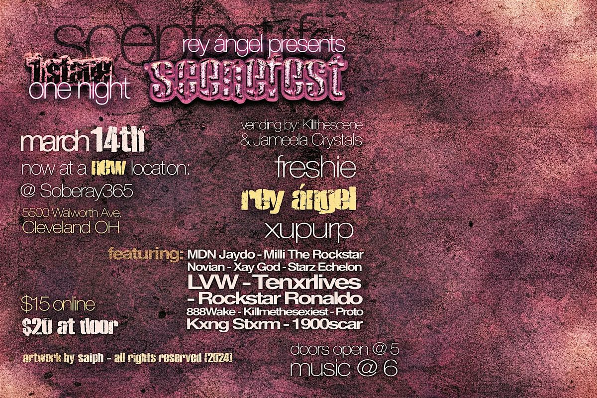 Rey Ángel presents SCENE FEST! A SHOW WITH 15 ARTIST IN 1 AWESOME NIGHT!! We also have vendors for clothing and jewelryAbout this Event