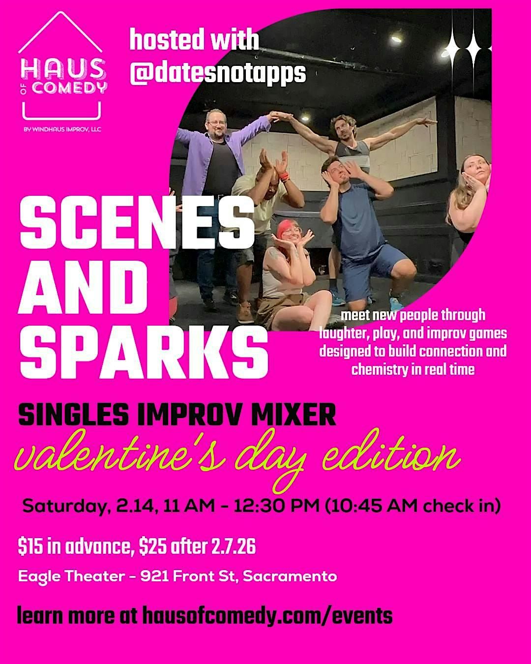 Join us for Scenes and Sparks — a fresh twist on mingling where you'll meet new people through laughter, play, and improv games designed to build connection and chemistry in real time.