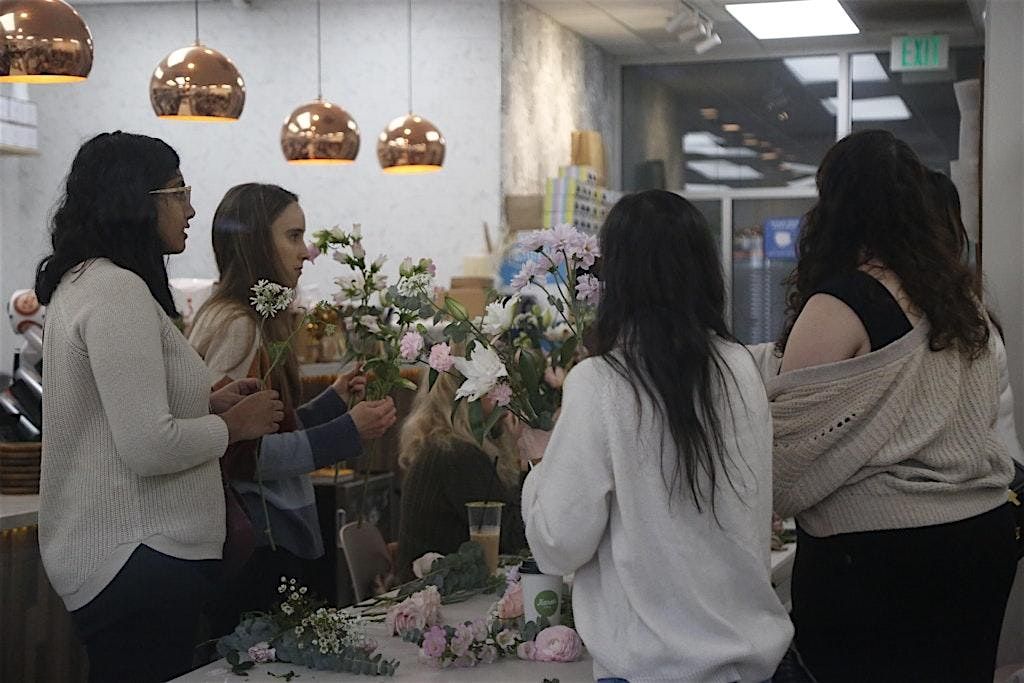No experience is needed. This is a come-as-you-are class to have fun, learn a little, and take home your beautiful creation. Designing a stunning floral arrangement while indulging in your favorite boba or coffee beverage is absolutely therapeutic.