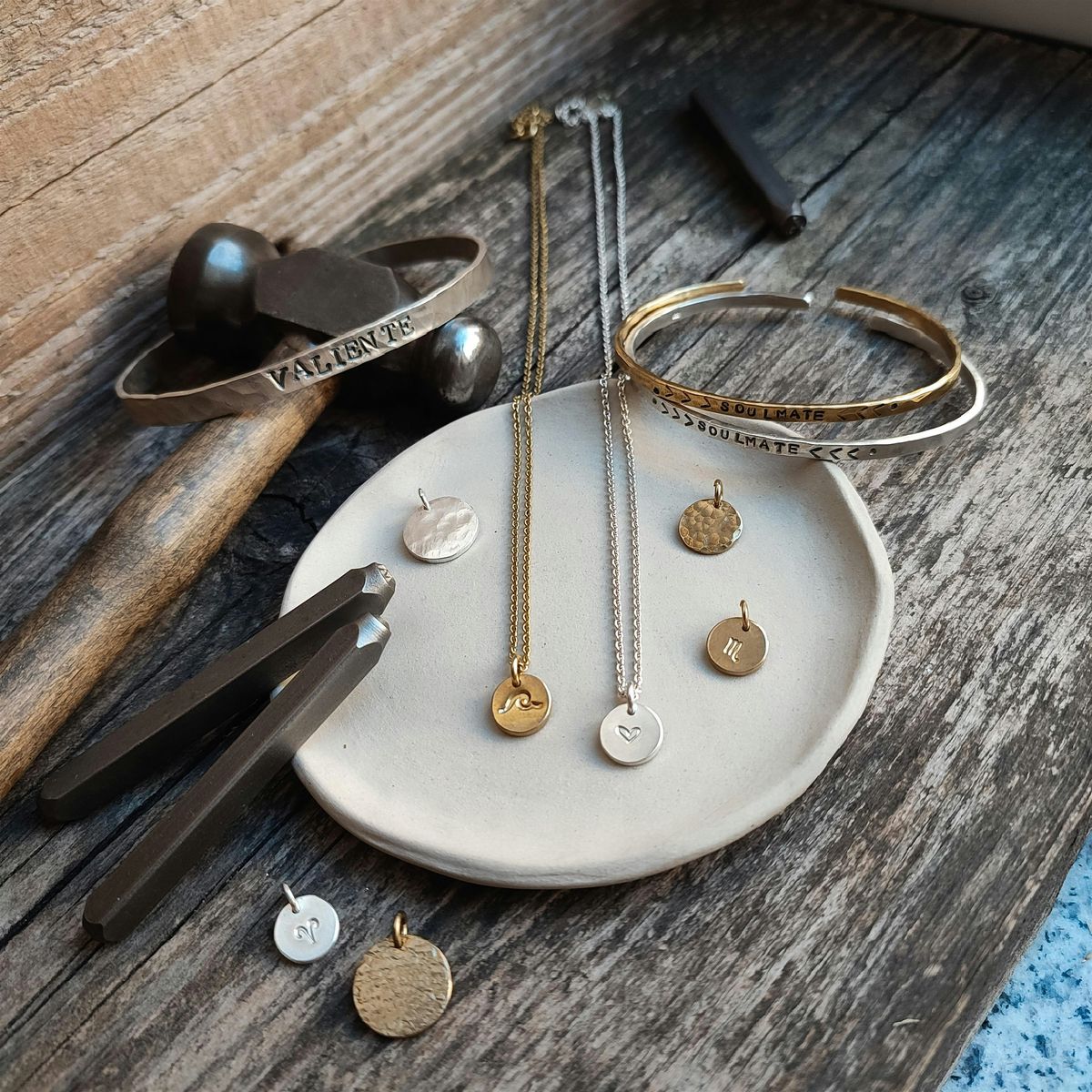 Willkommen in der Maki Handmade Goldschmiede in Stuttgart West! Bei unserem Schmuck-Workshop kannst du selbst kreativ werden und in die Schmuckherstellung schnuppern: unter Anleitung unseres erfahrenen Goldschmieds Camilo fertigst du einen Anhänger oder Armreifen mit individueller Gravur. Gearbeitet wird bei diesem Workshop mit Echtsilber oder goldenem Messing.