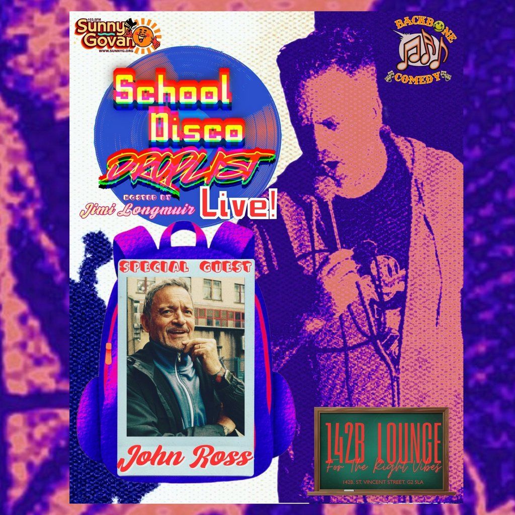 Backbone Comedy present a live version of the Sunny G show w/ Standup & literal School Disco from John Ross(Hip Replacement) Hosted by Jimi Longmuir.Artists