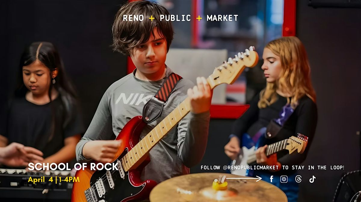 Join School of Rock Reno for an electrifying afternoon of live music from 1 to 4 pm, Saturday, April 4 at the Reno Public Market in Midtown, Reno.
