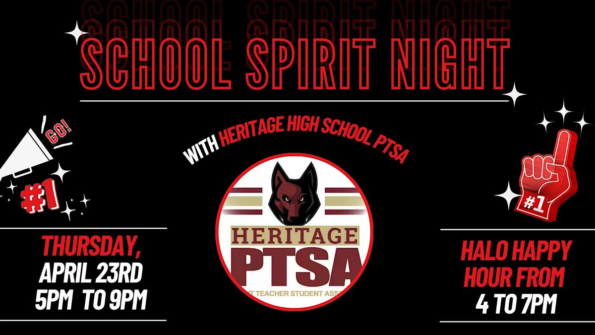 Get ready for an unforgettable Spirit Night at Halo with Heritage High School PTSA! Join us from 5pm to 9pm on Thursday, April 23rd and make your evening delightful and meaningful.