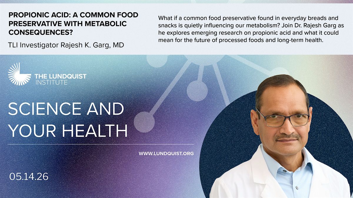 Join us on Thursday, May 14th, for Science and Your Health! Rajesh K. Garg, MD, will present on "Propionic Acid: A Common Food Preservative with Metabolic Consequences?"