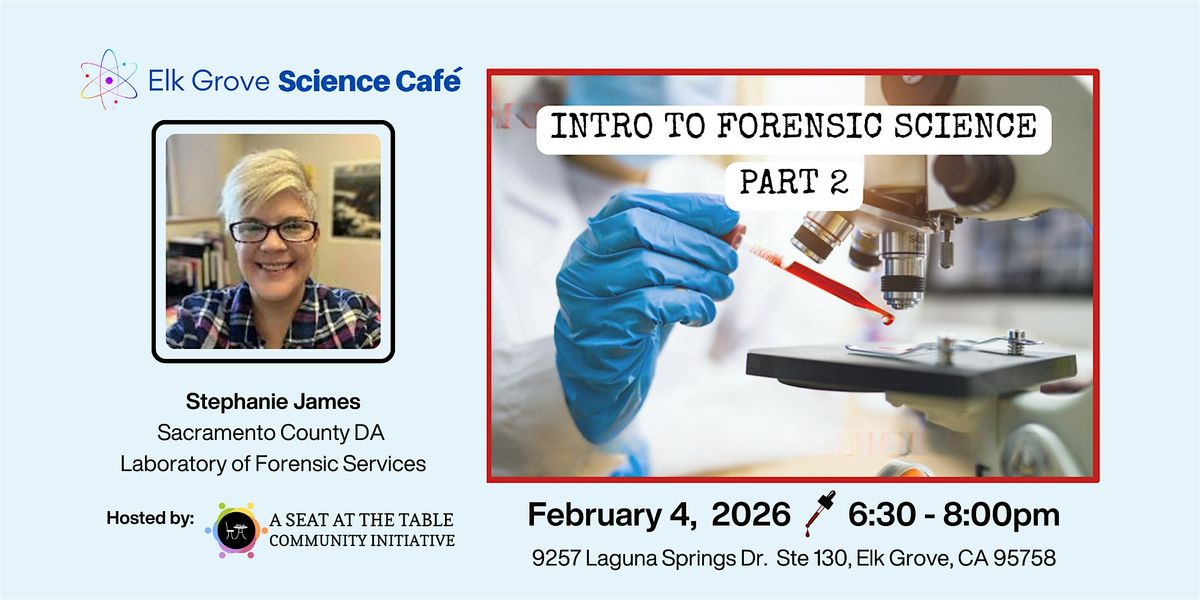 🔬 Welcome to Elk Grove Science Café! Held around the world, Science Cafés are monthly conversations that make science accessible for all. While this is geared for adults, all ages are welcome! RSVP on Eventbrite to get 10% off cafe sales during this event.