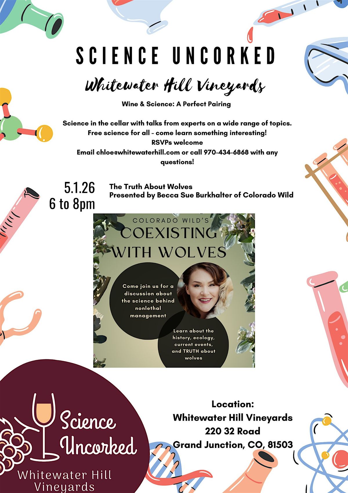 We will cover the history, current events, and ecology of wolves, followed by a presentation of the science behind coexistence. Did you know that killing wolves in response to dead livestock is likely to actually INCREASE the chances of another livestock animal taken by wolves? Did you know that the research shows us that coexisting with wolves is actually the most effective and efficient way to protect livestock from wolves? If that seems counter-intuitive, come learn why with Colorado Wild and Becca Sue.