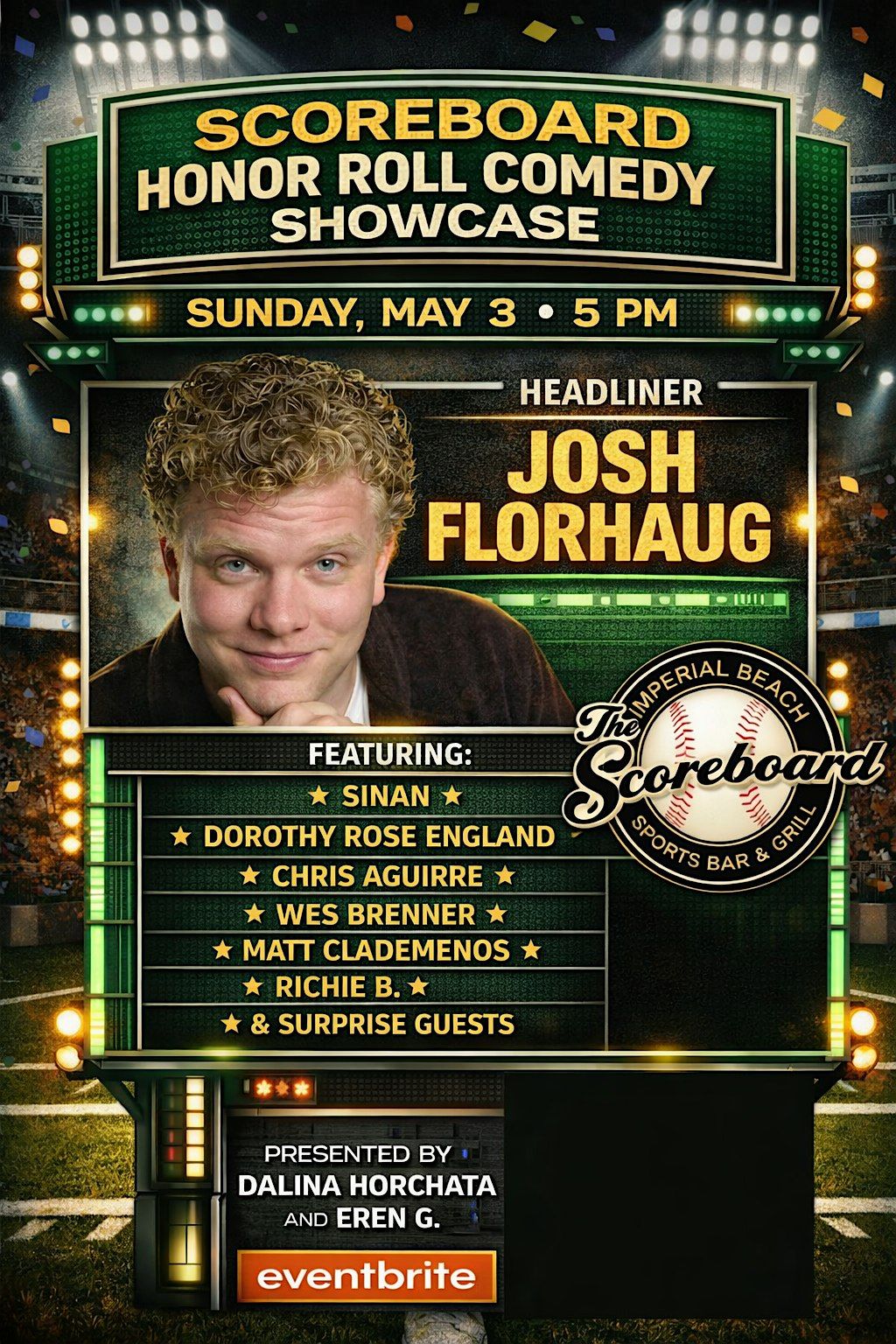 Get ready for a hilarious night of stand-up at the Scoreboard Honor Roll Comedy Showcase at The Scoreboard in Imperial Beach!