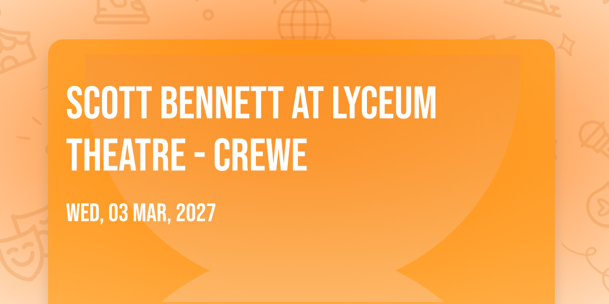 ✨ Enter a world of endless possibilities at Scott Bennett at Lyceum Theatre - Crewe, where every moment tells a story! 🏛️ The stunning Lyceum Theatre - Crewe in vibrant Crewe, EN transforms into a realm of wonder on March 3rd, 2027 at 07:30 PM. 🌟 They have crafted an experience that goes beyond the ordinary, combining elements of surprise, delight, and pure entertainment. Every detail has been thoughtfully considered to ensure your journey with us is nothing short of extraordinary. 🎯 Join fellow adventure seekers and memory makers in this celebration of imagination and innovation. 🎊 Reserve your spot today and be part of something truly special!