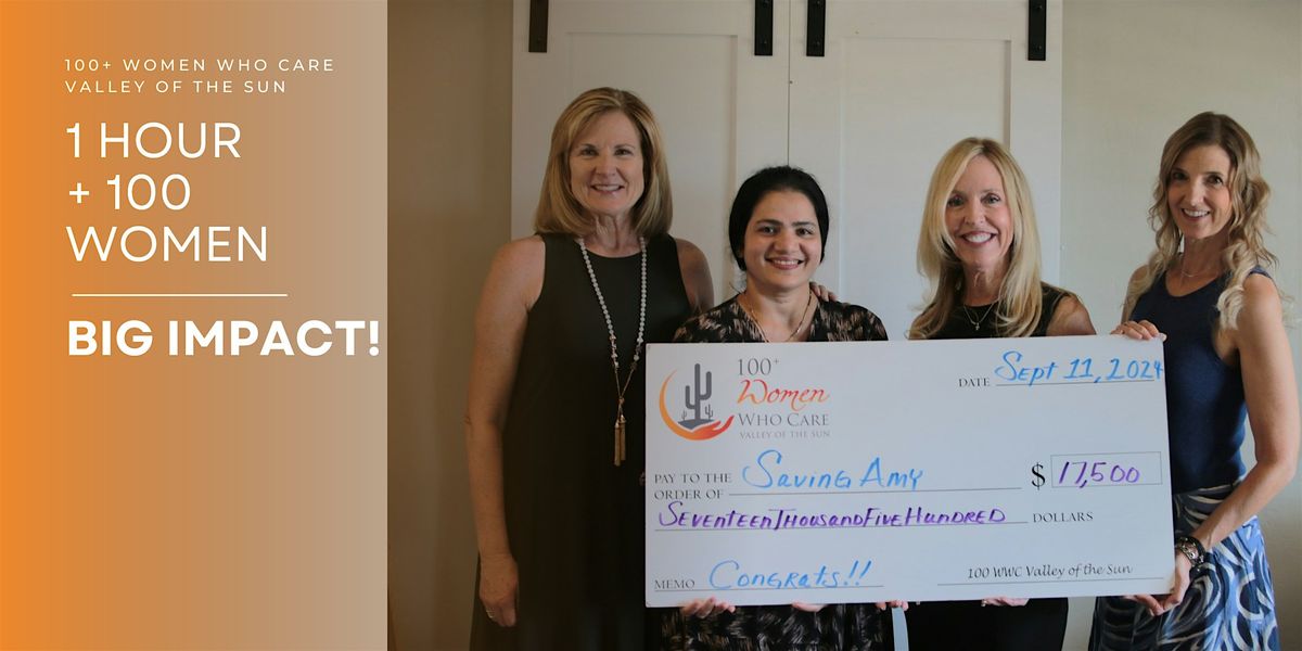 100+ Women Who Care Valley of the Sun is run by an Executive Committee of big-hearted volunteers along with the support of very generous sponsors. Our members make their donations directly to the local charities we select resulting in 100% of all donations going directly to those organizations. The goal of our chapter is to support the wonderful work our local nonprofits do in funds, exposure, and awareness in a minimal amount of time.