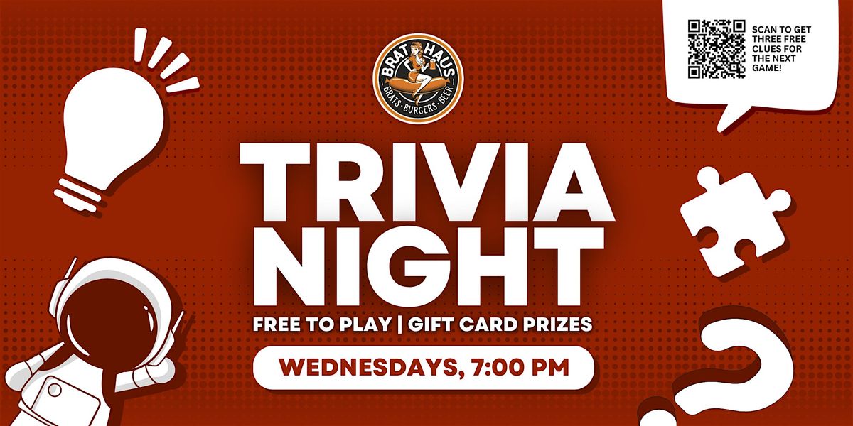 Join us for free live trivia every Wednesday at 7pm at Brat Haus in Scottsdale! Free to play, and top teams win gift card prizes!