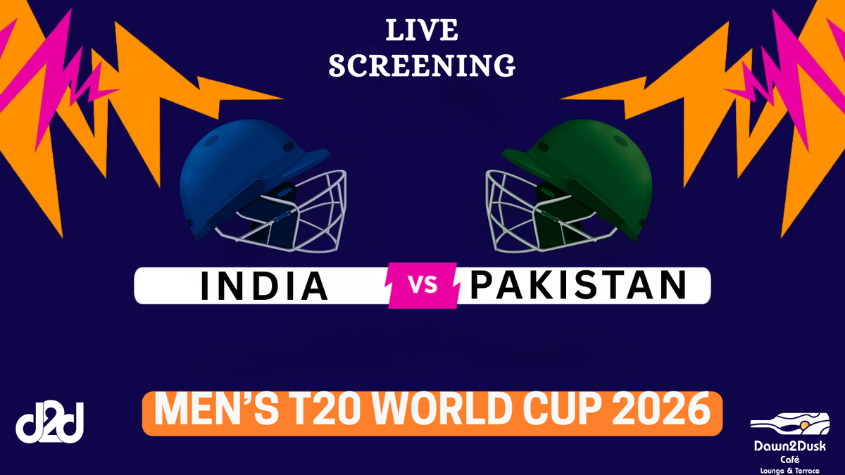 India vs Pakistan – T20 World Cup 2026 LIVE ScreeningThe biggest rivalry in cricket is back, and it deserves the biggest stage! Witness India vs Pakistan, the most awaited clash of the T20 World Cup 2026, streaming LIVE at Dawn2dusk Café.Experience every moment on our largest giant screen at the city’s biggest rooftop café, surrounded by electrifying crowd energy, open-sky vibes, delicious food, and refreshing drinks.From power-packed sixes to nail-biting overs, feel the thrill like never before as fans unite to cheer Team India in an atmosphere filled with passion, excitement, and unforgettable energy.✨ Biggest Match of the World Cup✨ Biggest Rooftop Café✨ Largest Screen Experience✨ Ultimate Match-Day Vibes📍 Dawn2dusk Café