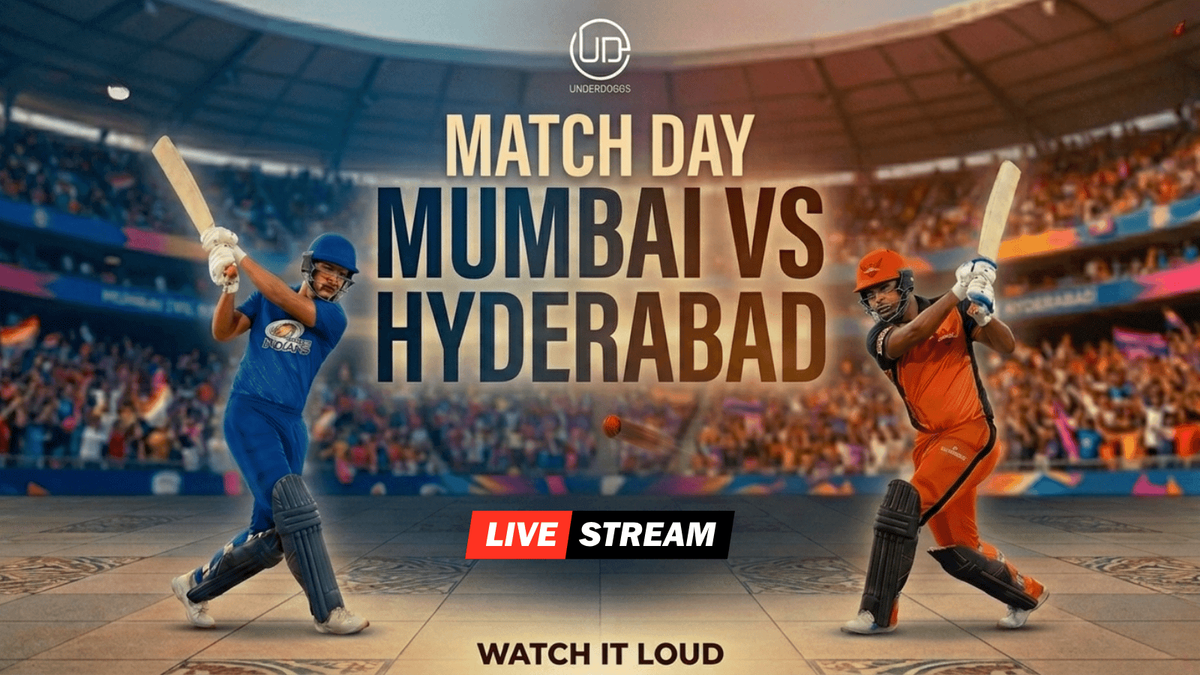 Get ready for a blockbuster clash as Mumbai takes on Hyderabad, streaming live on massive screens at Underdoggs.Feel the adrenaline of every over, every wicket, and every last-ball finish in a high-energy matchday atmosphere. With great food, refreshing drinks, and a crowd that lives for cricket, this is where the real action unfolds beyond the stadium.Game on. Volume up. Vibes unmatched.