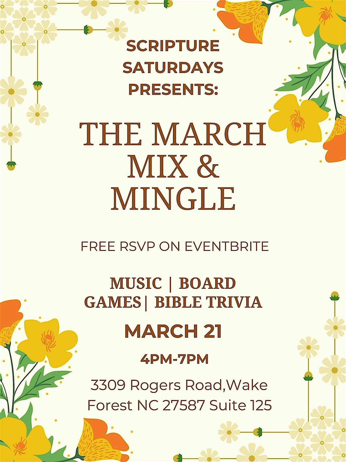Are you an adult in the Raleigh, Durham, Cary, or Wake Forest area looking for a Chist Centerd game night? Look no further-Wwelcome to Scripture Saturdays: March Mix and Mingle Game Night!