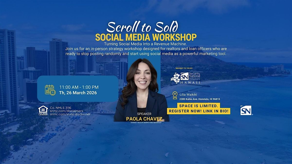 Ready to turn your social media into a powerful lead-generation tool? Join us for Scroll to Sold, an interactive in-person workshop designed specifically for real estate agents and loan officers who want to elevate their online presence and grow their business.