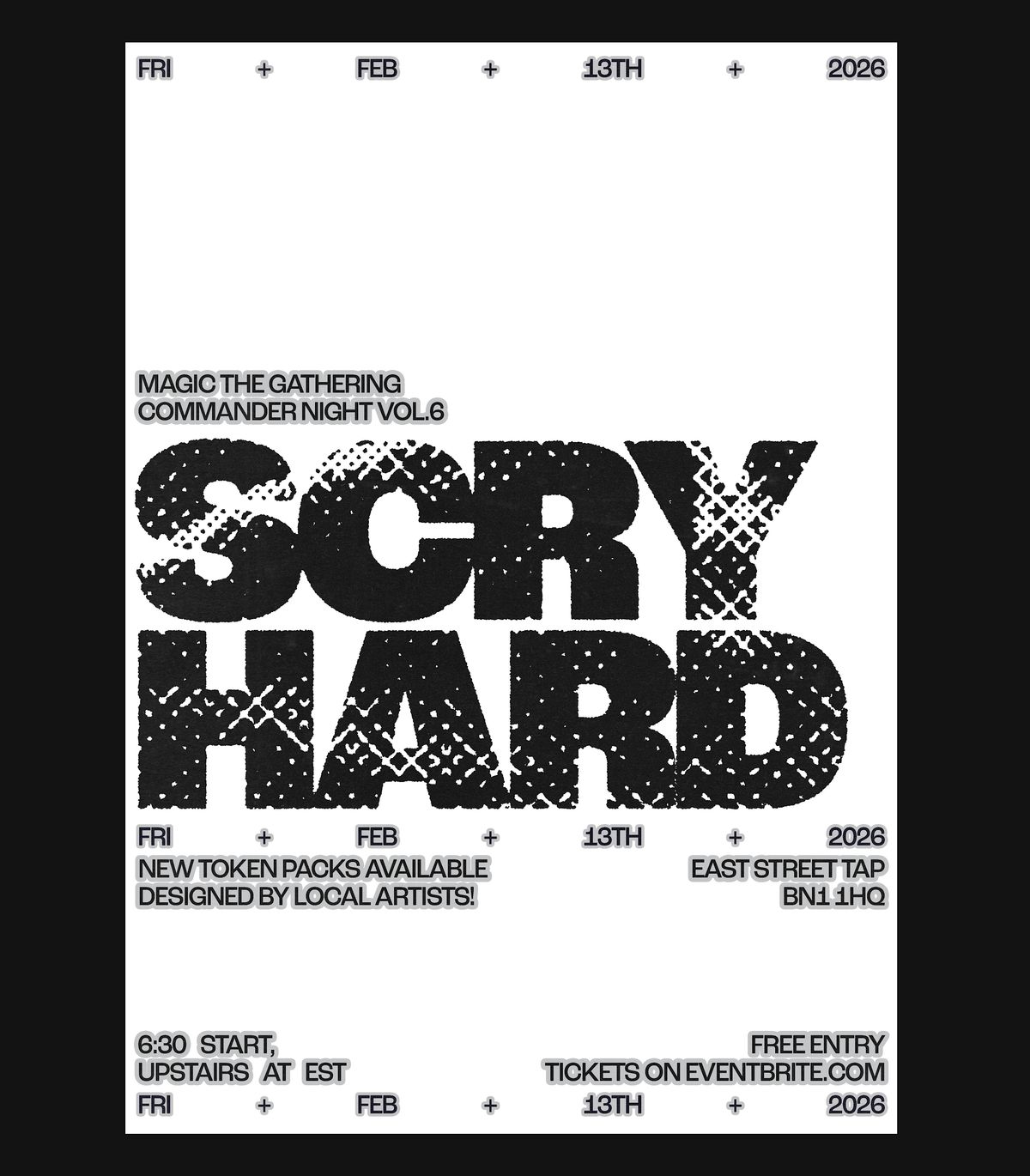 ScryHard is a Magic the gathering event based in different pubs around Brighton to get new and old players together to really celebrate the Gathering part involved with magic. Have a few beers, meet new people and play some games. Mostly casual play but if you wanna have your own competitive pod, you can. New players who haven't even played a single game before are still welcome, we love to teach new people and we will always try to put you against similar players who are new. If you need a deck we always have spare so you can really get a feel for the game.