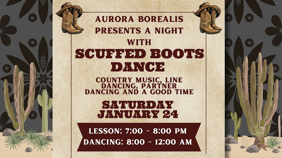 Come early, grab a drink, learn a few steps, and dance the night away with Scuffed Boots Dance at Aurora Borealis!