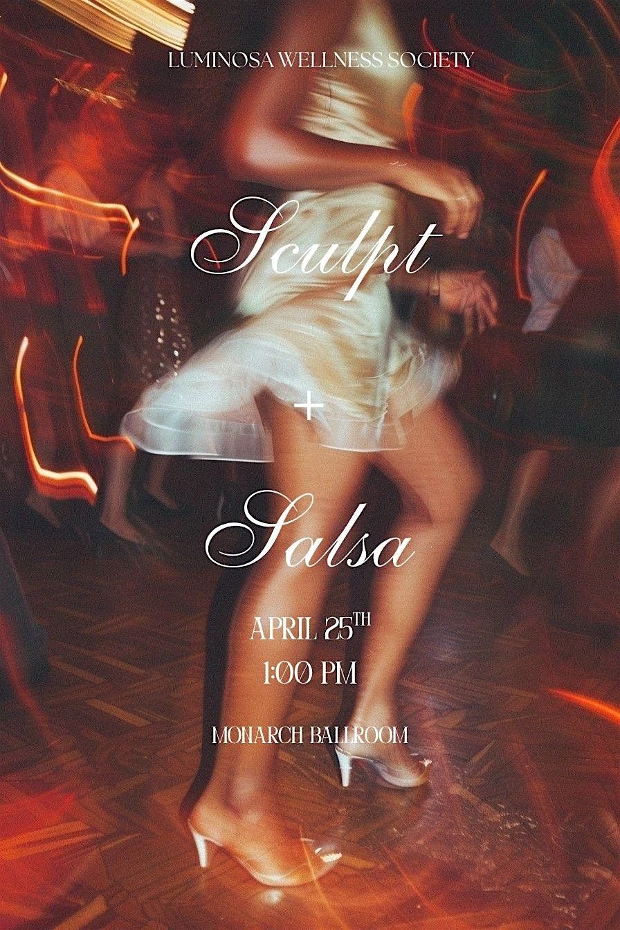 Luminosa invites you to an afternoon of movement, music, and unforgettable vibes with Sculpt + Salsa. Combining a spicy pilates sculpt session with an all-level friendly salsa experience that will have you moving with confidence and joy. The fun continues after during social + dance hour with curated vendors, mocktails, and the chance to meet new amigas. Remember to bring your mat and your sneakers, this is your time to move, connect, and shine!