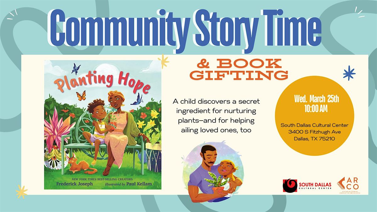 Pull up to the South Dallas Cultural Center for a fun-filled Community Story Time featuring Planting Hope by Frederick Joseph!This beautiful story follows a child who discovers a special ingredient for helping plants grow, and for caring for loved ones, too. It’s all about love, hope, and the magic of growing something together.After the story we will have a hands on kid friendly seed planting activity, so every family can take home their very own planted seeds!
