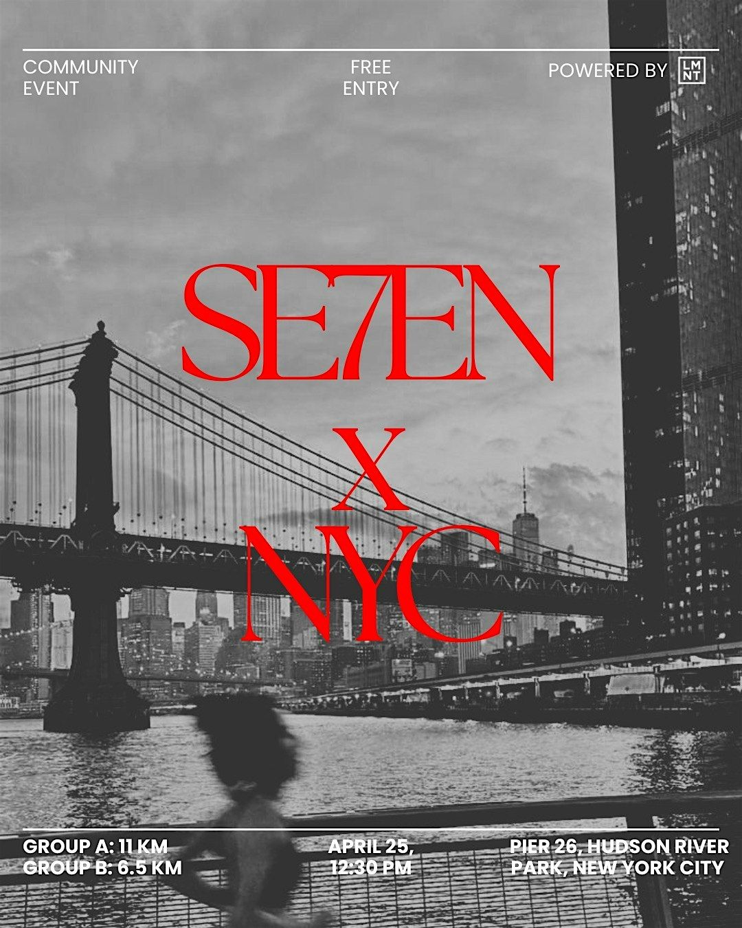 SE7EN RUN: NEW YORK 📍 Pier 26, Hudson River Park, New York City 📅 Saturday, April 25 | Arrive by 12:00 PM | Run starts at 12:30 PM sharp