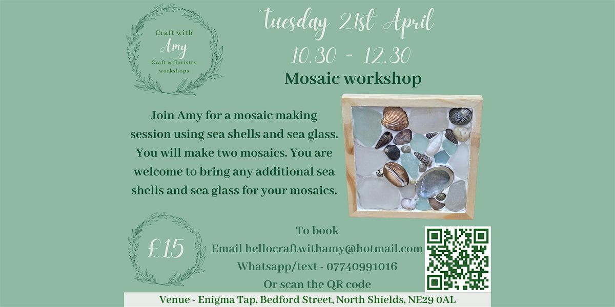 Join Amy for a mosaic workshop using sea glass and sea shells. Over 18's onlyAbout this Event