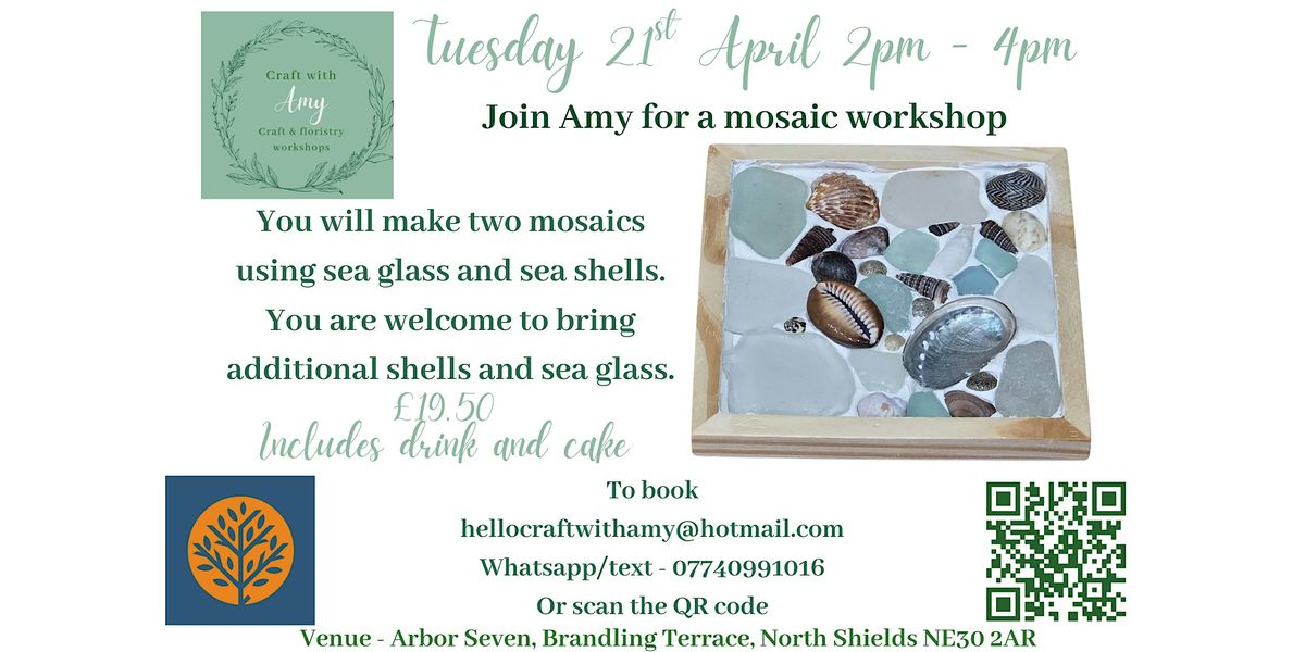 Join Amy for a mosaic workshop using sea glass and sea shells at Arbor Seven includes a drink and cake from Arbor SevenAbout this Event