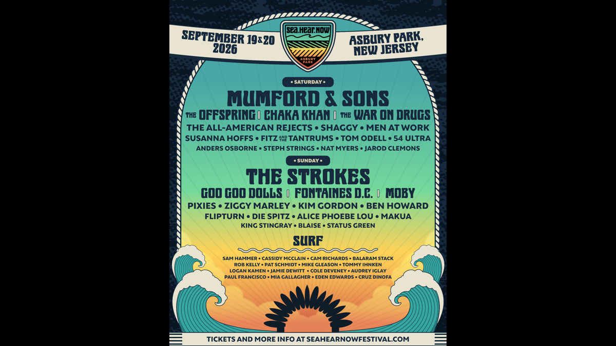 🎉 Prepare to be amazed at Sea Hear Now Festival: Mumford & Sons The Strokes - 2 Day Pass, the most anticipated gathering of the season! 🌟 Set against the stunning backdrop of Asbury Festival Area in vibrant Asbury Park, NJ, this event promises to redefine your expectations. 📅 Mark your calendars for September 18th, 2026 at 07:00 PM and get ready to immerse yourself in an atmosphere of wonder and excitement. ✨ From the moment you arrive, you'll be transported into a world where memories are made and stories come alive. They have crafted an experience that perfectly harmonizes entertainment, innovation, and community spirit. 🌈 Join us as we create moments that will be discussed for years!http://maps.seatics.com/AsburyFestivalArea_SeaHearNowFest_2022-07-01_2022-07-01_0750_07012022_080003_SVGC_tn.png