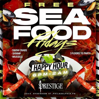 Happy hour Fridays free seafood $6 margaritas $6 lemon drops 5pm until 9pm xox lounge 218 n 11th st everyone free with a online ticket