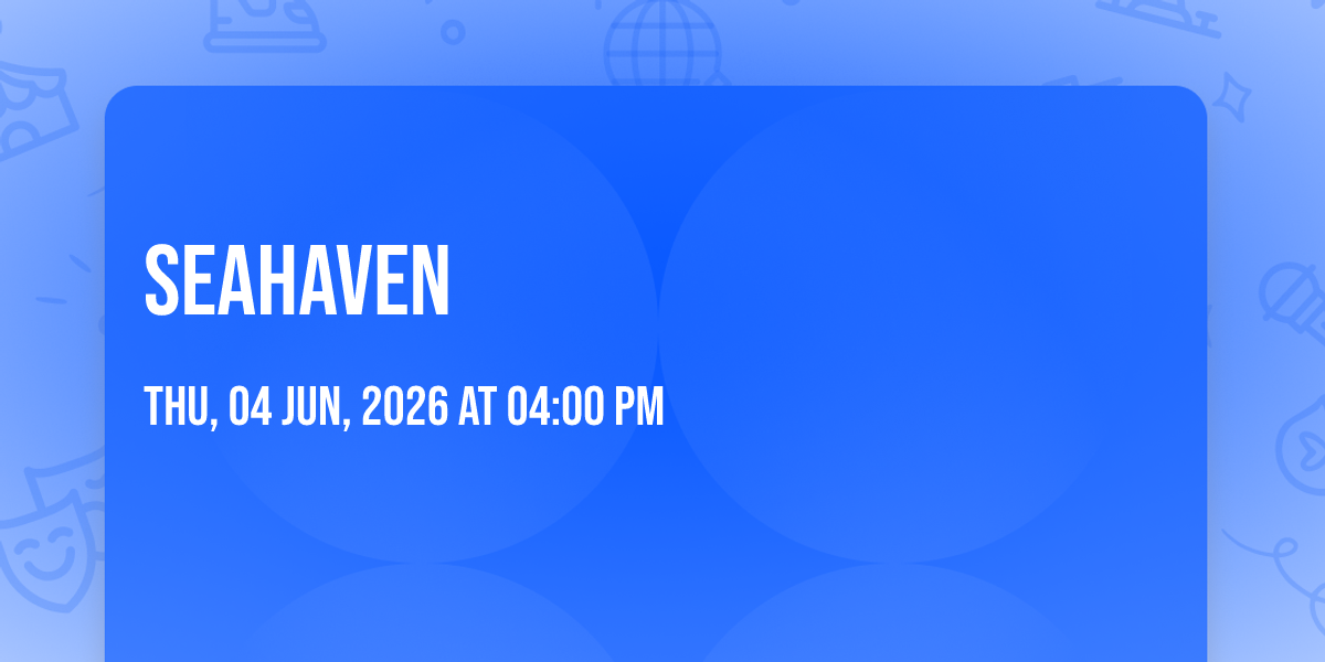 🎉 Prepare to be amazed at Seahaven, the most anticipated gathering of the season! 🌟 Set against the stunning backdrop of Vera Project in vibrant Seattle, WA, this event promises to redefine your expectations. 📅 Mark your calendars for June 4th, 2026 at 04:00 PM and get ready to immerse yourself in an atmosphere of wonder and excitement. ✨ From the moment you arrive, you'll be transported into a world where memories are made and stories come alive. They have crafted an experience that perfectly harmonizes entertainment, innovation, and community spirit. 🌈 Join us as we create moments that will be discussed for years!http://maps.seatics.com/GeneralAdmissionEvent_2018-10-03_1713_SVGC_tn.gif