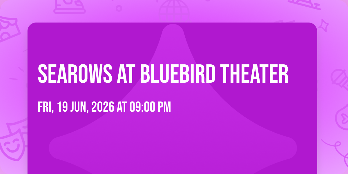 ✨ Experience the magic of Searows at Bluebird Theater, where moments become memories that last a lifetime! 🏛️ The iconic Bluebird Theater in Denver, CO sets the perfect stage for an unforgettable celebration on June 19th, 2026 at 09:00 PM. 🌟 It's been a curated experience that brings together the best of entertainment and innovation, creating an atmosphere of wonder and excitement. From the moment you arrive, you'll be immersed in a world where the ordinary transforms into the extraordinary. 🎊 Book early to secure your place in what promises to be an event that will be talked about for years to come!