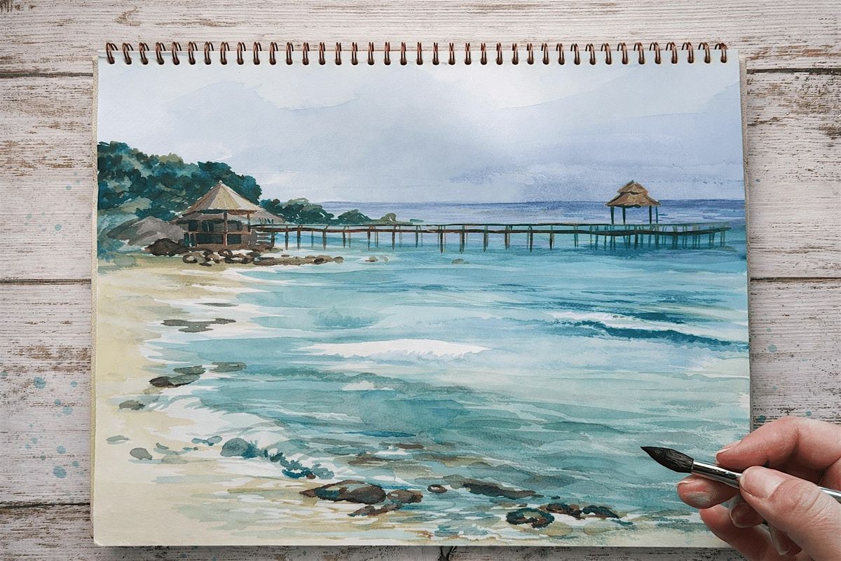 Discover the beauty and movement of the sea in this Seascapes Watercolor Workshop, where you will learn how to paint ocean views, waves, and coastal atmospheres using watercolor techniques.